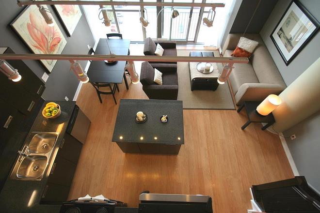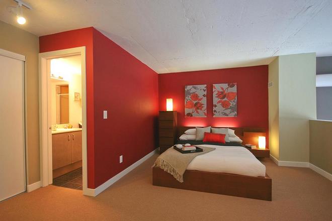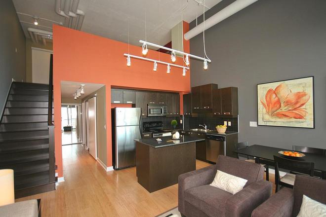 Raw industrial aesthetics of a newly built Toronto loft attracted a couple of young professionals. Toronto interior design firm tulip design was brought in to help the couple with interior design ideas and to make their place truly personalized and chic. Modern sleek interior lines and bold colours played the major role in the loft’s design. Dramatic paint and open space planning complement and further enhance the existing industrial structure of the loft. Contemporary condo-size furniture and bright accessories add to the spacious feel and make the rooms design flow seamlessly into each other. Bedroom interior design creates an open airy sensation and features Zen inspired elements such as clean lines and vibrant colours. Industrial style lighting and stainless steel appliances work harmoniously with dark stained kitchen cabinetry and leave it feeling upscale but simple at the same time. Special attention to eco features such as low VOC paints, reuse of furniture pieces and low voltage lighting make the space healthier and more environmentally friendly. |